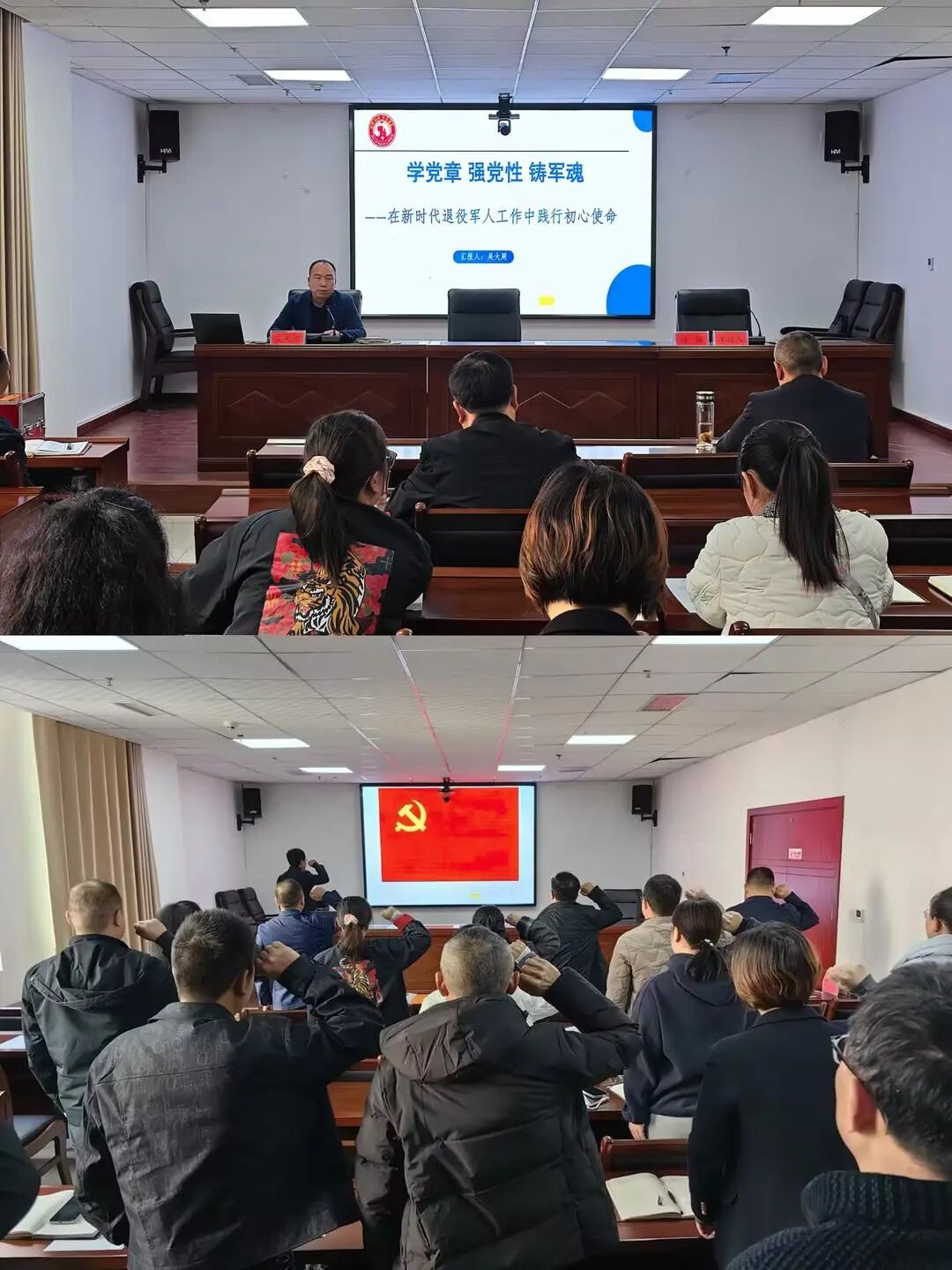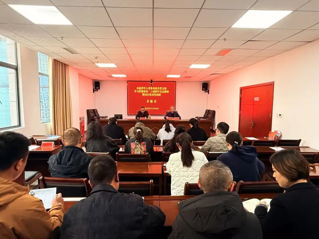 为深入学习贯彻习近平新时代中国特色社会主义思想和党的二十届四中全会精神,进一步提高党员干部政治能力素质,助推退役军人工作高质量发展,11月20日,市退役军人事务局机关党支部学习贯彻党的二十届四中全会精神暨2025年党员培训班开班。市退役军人事务局党组分管党建工作班子成员旷永新同志出席并讲话。全体党员参加,共青团员、青年干部列席并参加学习。